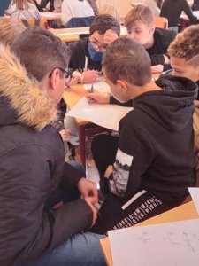 Ce mercredi 9 mars, les élèves de 1CC et de 1CD ont réalisé une activité au cours de mathématique avec leur professeur, madame Letté. Il s’agissait d’un jeu collaboratif qui leur a permis de réviser de manière ludique les figures planes avant leur contrôle de synthèse.