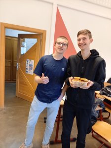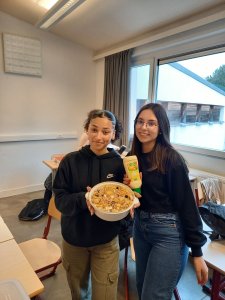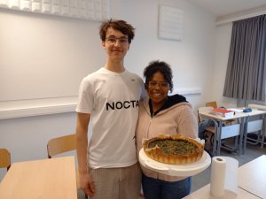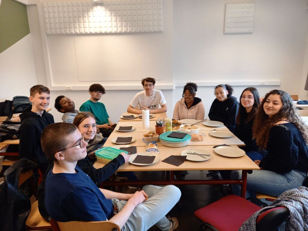 « Today we had a wonderful lunch with the 5-6LM2 students. They first created a recipe that had to be healthy and then presented it orally to their schoolmates. After that we tasted their original creation, so we enjoyed an amazing spinach pie, crusty delicious salmon toasts, exquisite celery risotto with shrimps and finally a refreshing yummy tuna potato salad.«