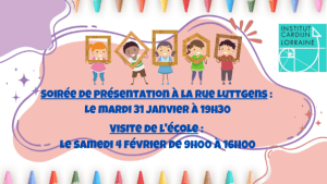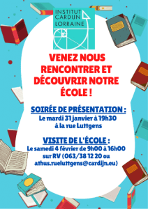 Le mardi 31 janvier — Soirée de présentation de l’école à 19h30.